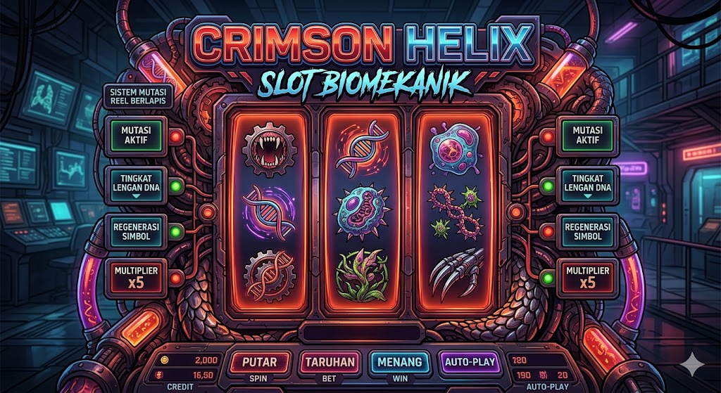 Di tengah arus besar perkembangan slot modern yang semakin ramai dengan tema yang itu-itu saja, Crimson Helix Slot dari provider Vortex Spiral Gaming muncul sebagai sesuatu yang terasa benar-benar berbeda sejak pertama kali dimainkan. Slot ini tidak mencoba menjadi “ramai” seperti slot777 atau slot888 yang mengandalkan warna mencolok dan efek instan, melainkan membangun atmosfer yang lebih dalam dengan pendekatan biomekanik yang unik. Hal ini langsung terasa terutama bagi pemain yang sudah sering mencoba berbagai slot gacor 2026 dan mulai mencari sesuatu yang lebih kompleks serta tidak mudah ditebak.